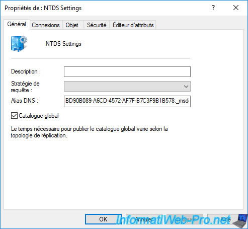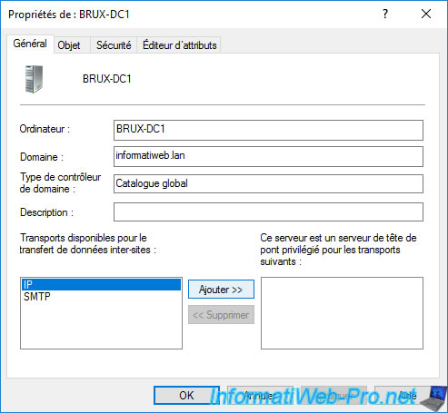 Important : remember that Microsoft recommends defining at least 1 domain controller as a "Global Catalog" at each geographic site, as explained at the very beginning of our tutorial.