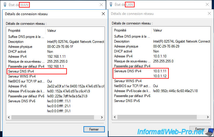 Note: Internet access from this VPN server will still work, as it will use the DNS servers present on your AD domain controllers and these will by default redirect DNS requests to the root DNS servers present on the Internet (and which are already entered by default in the DNS servers installed on Windows Server).
