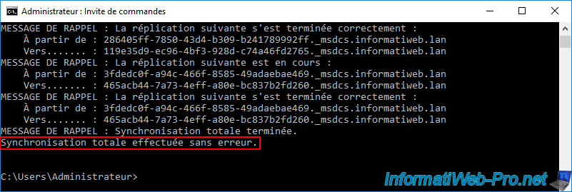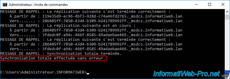 Once the command is complete, the message "Total synchronization completed..." will appear.
