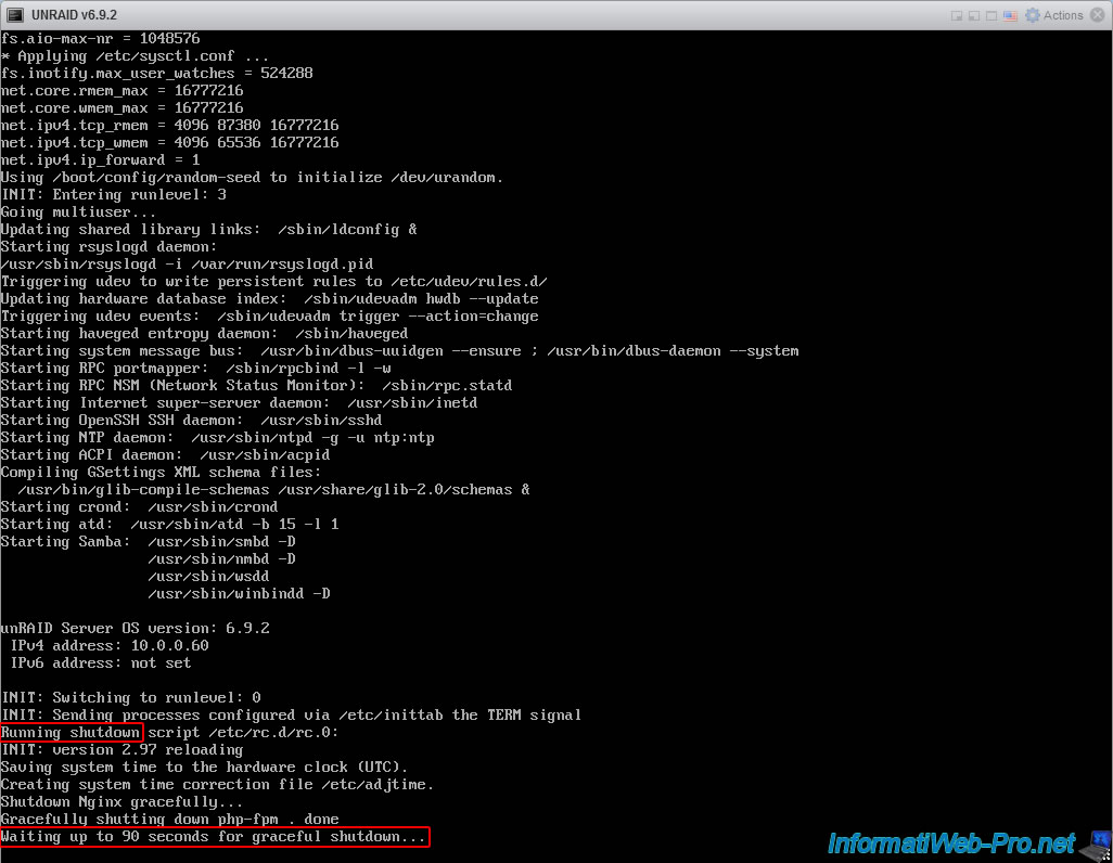 Running shutdown script ... ... Waiting up to 90 seconds for graceful shutdown...