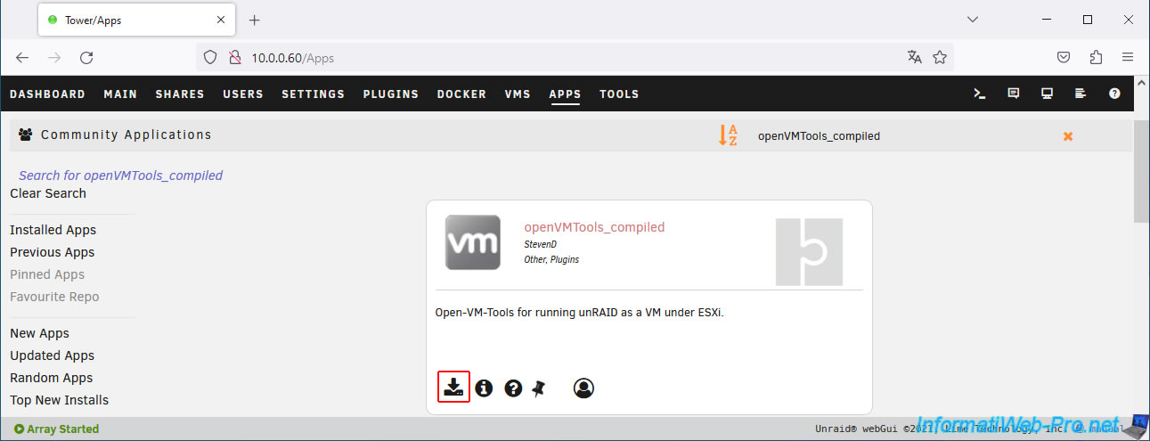 Search for the "openVMTools_compiled" plugin via the "Apps" tab and install it.
