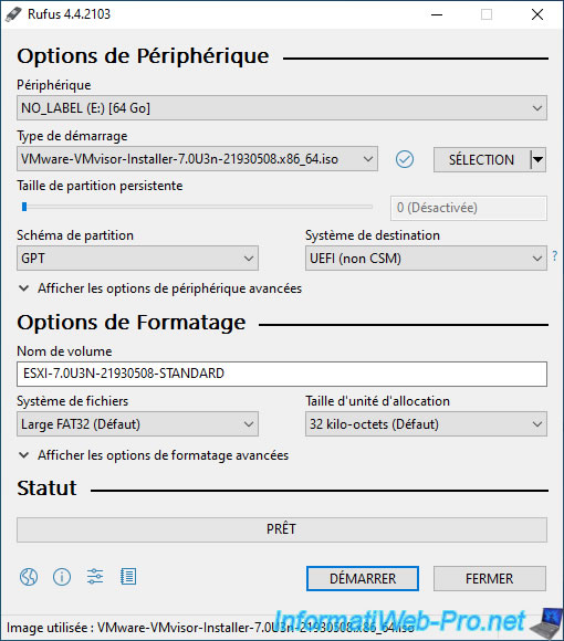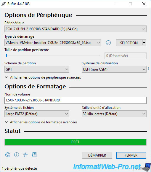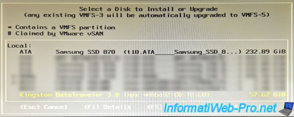 In the list of disks detected by VMware ESXi 7, you will see your bootable USB key appear.