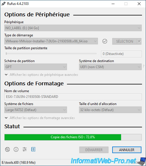 Please wait while your USB key is formatted and the files in the ISO file are copied to your USB key.