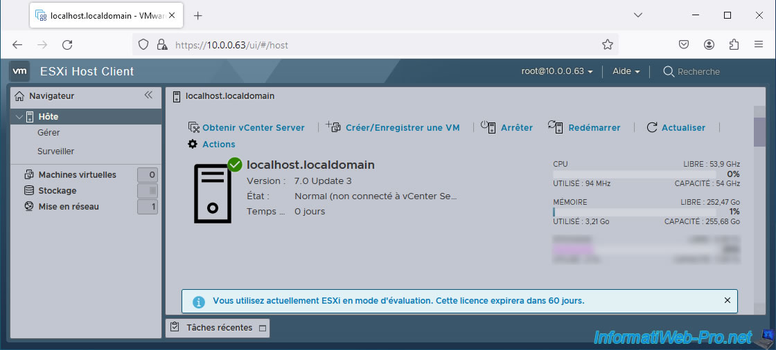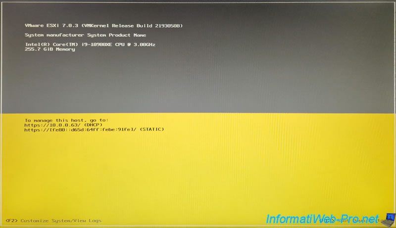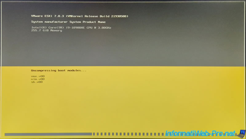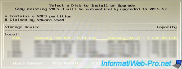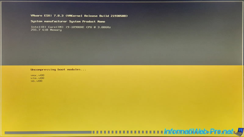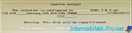 In our case, we installed VMware ESXi 7 on a second SSD (for this tutorial only) on the computer used with the same hypervisor.