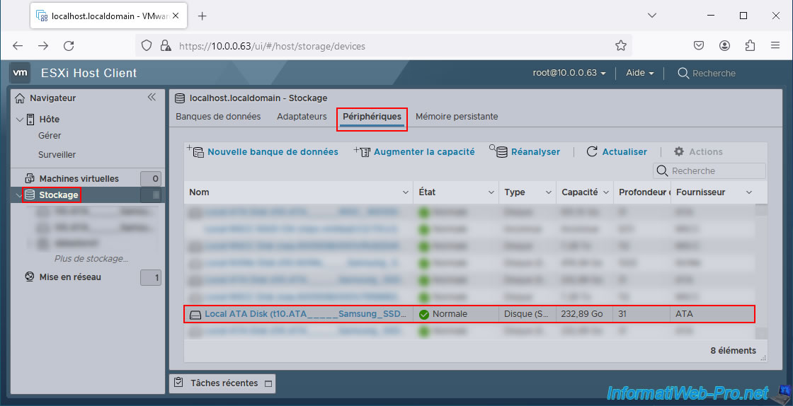 Go to the "Storage -> Devices" section and click on the name of the disk selected during the VMware ESXi 7 installation.