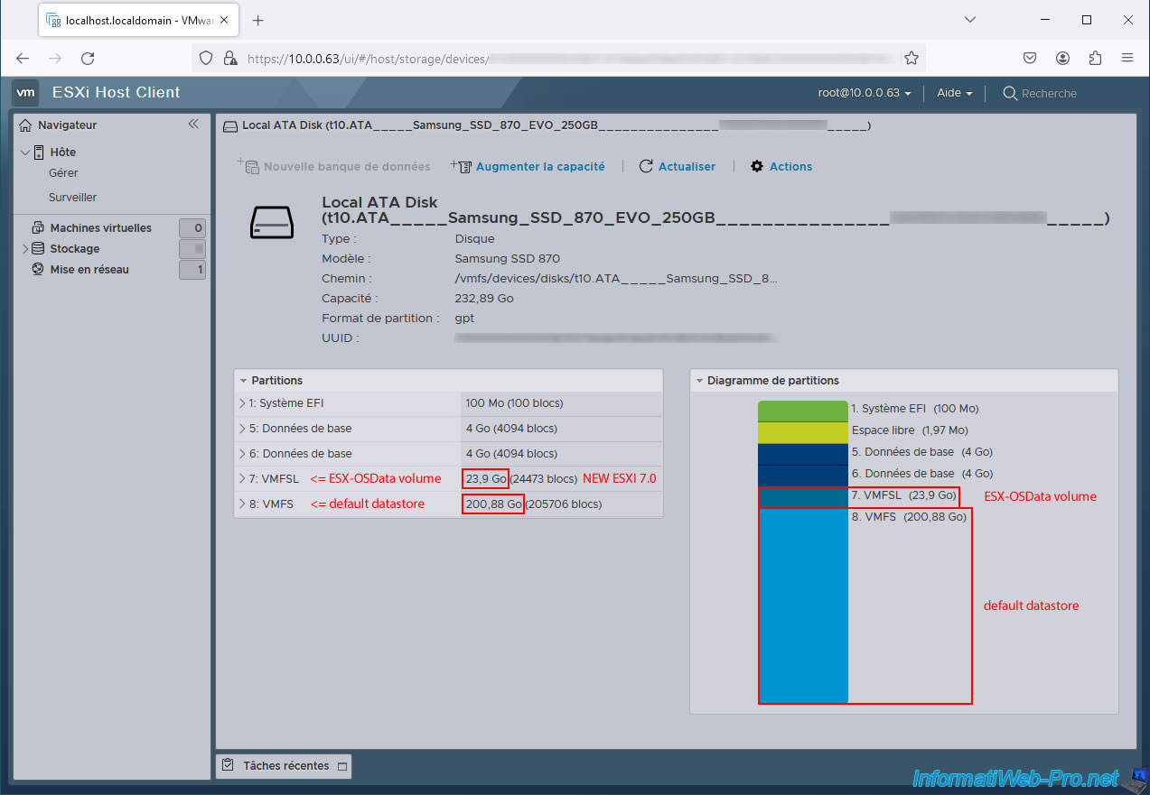 This corresponds to the size of the VMFS partition created on our "Samsung SSD 870 EVO."