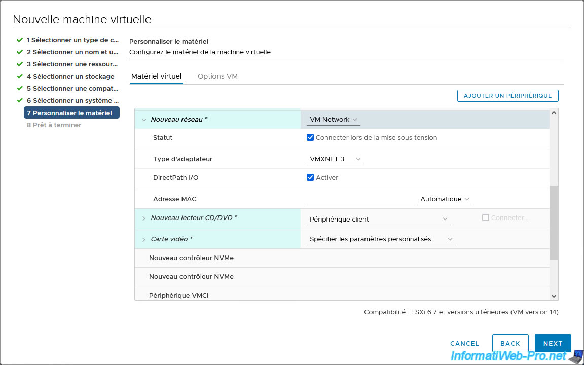 Regarding the "DirectPath I/O" box, this doesn't matter for this type of network adapter.
