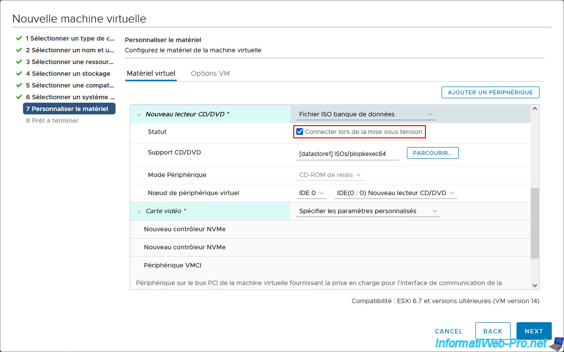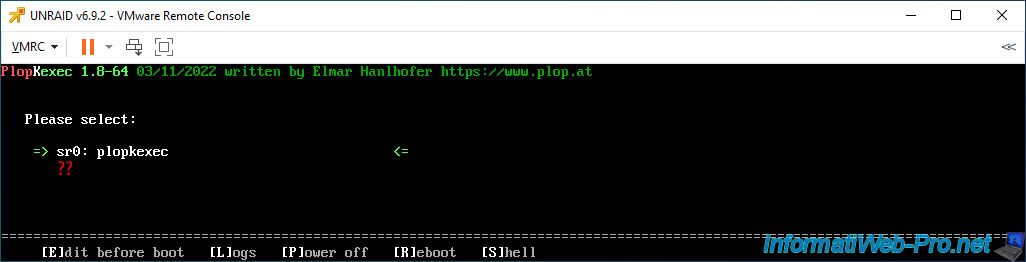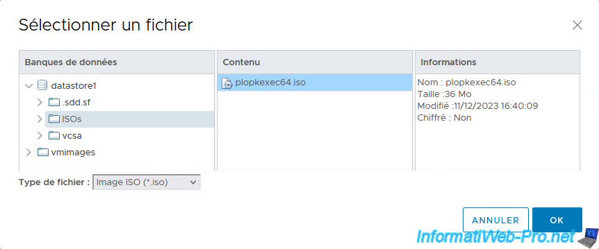 Then, select the "plopkexec64.iso" file previously stored in a datastore on your VMware ESXi host.