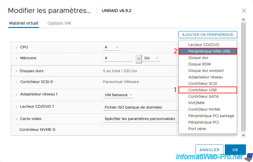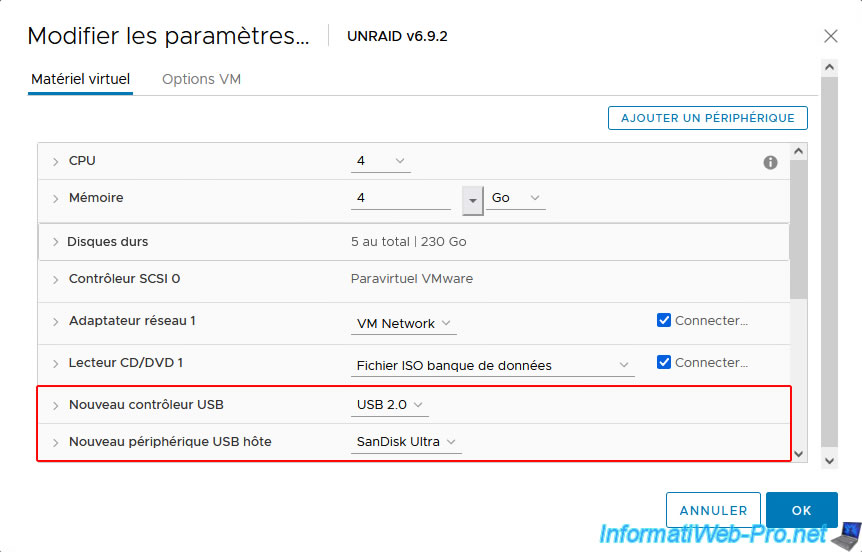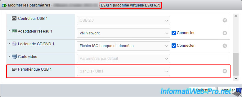 Note: if your USB key doesn't appear, make sure that input/output (I/O) virtualization is enabled in the motherboard BIOS of your VMware ESXi host.