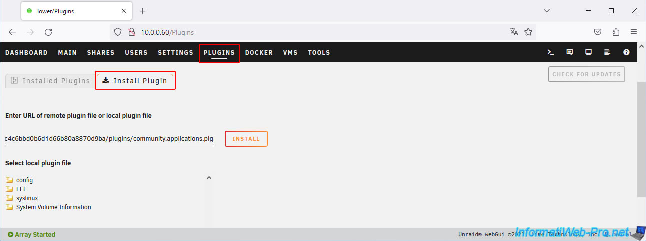 To do this, go to "Plugins -> Install Plugin", type "https://raw.githubusercontent.com/Squidly271/community.applications/master/plugins/community.applications.plg" and click "Install".