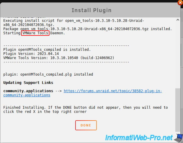 Once the plugin is installed, restart your Unraid server to ensure that VMware Tools are properly loaded by Unraid.