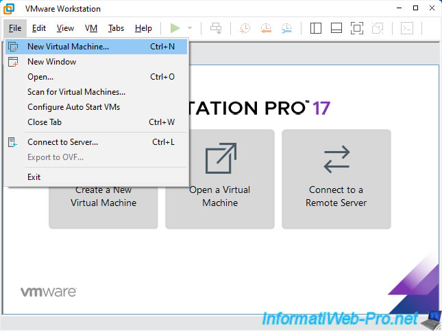 In VMware Workstation Pro, go to the menu: File -> New Virtual Machine.