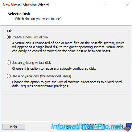 Select "Create a new virtual disk" to create a new virtual hard disk.
