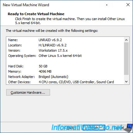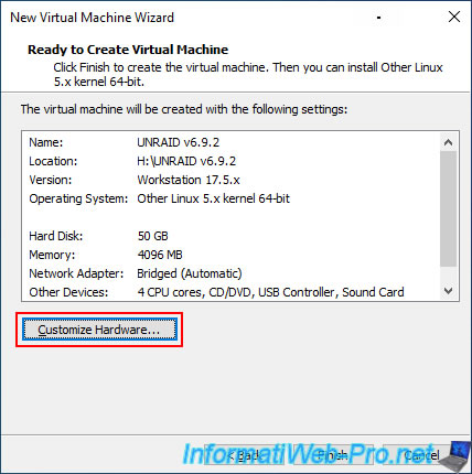 At the end of the wizard, click on: Customize Hardware.